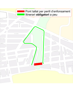 El pont dels sequesos presenta perill d’esfondrament i s’ha habilitat una via alternativa obligatòria per als vianants i vies alternatives per als vehicles. Els punts d’accés d’entrada i sortida, per evitar aquest punt són l’N-340 o la carretera del Canal, accedint per la Creu Roja.