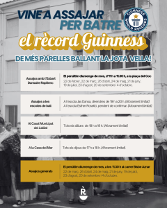 Des de la Regidoria d’Identitat animen tota la ciutadania a sumar-s’hi i participar en aquesta fita col·lectiva que, més enllà de fer història, serà una jornada de germanor que reivindicarà la jota vella com a element identitari del municipi i situarà la Ràpita com a epicentre d’un esdeveniment cultural i participatiu amb projecció internacional.