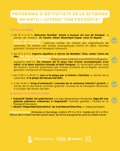 Tallers, jocs, espectacles, esports i activitats familiars ompliran diferents espais del municipi del 28 de març al 2 d’abri